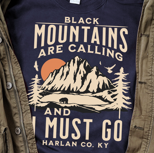 The Black Mountains are calling and I must go navy short sleeve t shirt